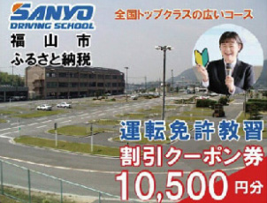 広島県公安委員会指定の「山陽自動車学校」の教習料金に使える利用券(割引クーポン券)をお届けします