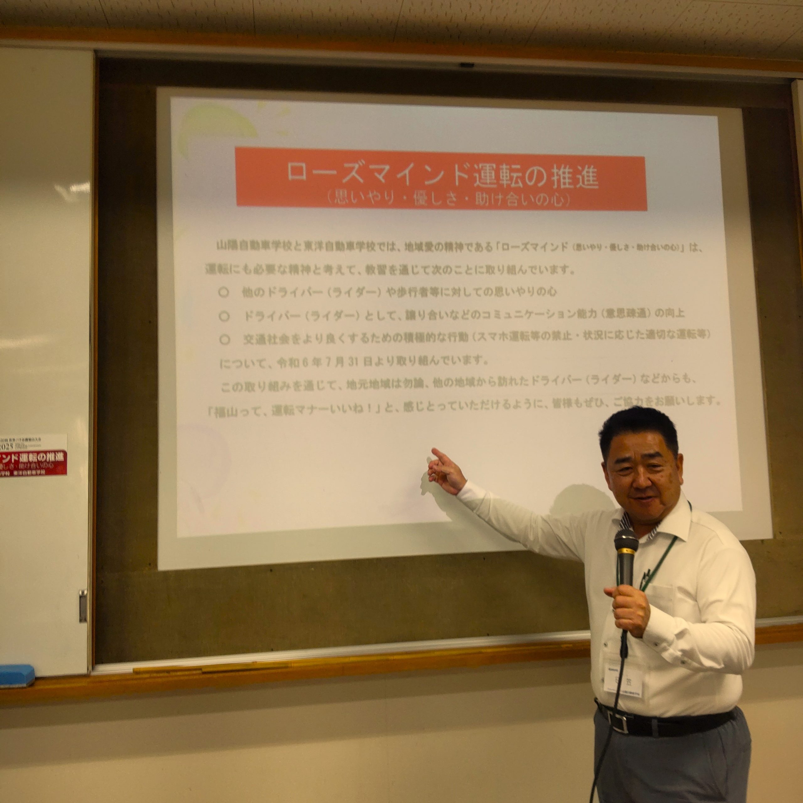本日は「ローズマインド運転」についての研修会をしました。近年の交通事故や交通トラブルの多くは、技術不足よりも“感情のコントロール不足や譲り合いの欠如”が原因となっています。そのため、現代の運転教育には「技術・知識」に加えて、心の在り方が欠かせません。福山市が掲げる「ローズマインド(思いやり・優しさ・助け合いの心)」は、この課題に対する実践的な考え方であり、山陽の教育方針は福山市の理念と連動した指導を特色とした事故を起こさせないための安全教育です。私たち指導員の役割は、運転操作や法規を教えることだけでなく、教習生のお客様が卒業後も安全に運転し続けられる力を育てることです。(*^-^*)